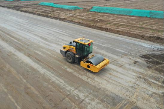灰面壓實/收面階段:SR26H-Gi2 型單鋼輪壓路機再次上陣,以其出色的壓實效果和收面質量,為后續施工奠定了堅實基礎。