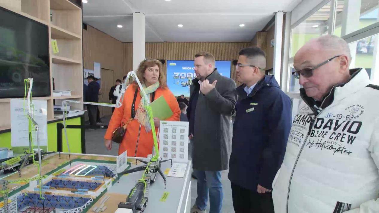 高聳入云的R800-40極光綠塔機是本屆德國寶馬展上唯一一臺中國品牌塔機,也是中聯(lián)重科在歐洲市場展示的最大噸位塔機。碩大的四個支撐“腿”上印著的阿斯塔納世博館、盧塞爾體育館等全球知名施工案例,展示其在場館、橋梁、電建等各領域的豐富應用場景。一經(jīng)亮相,便憑借其操作安全、施工高效、運輸便利的優(yōu)勢,在現(xiàn)場贏得大量訂單。