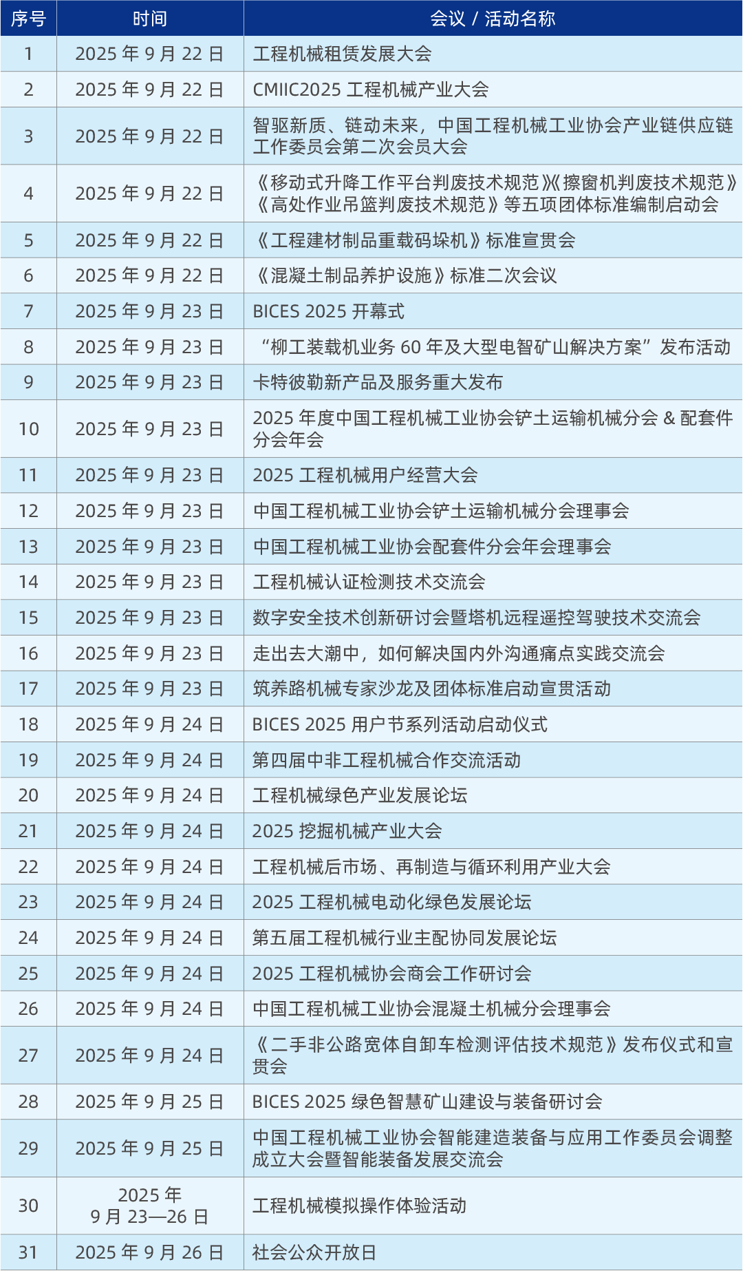根據(jù)活動(dòng)的規(guī)劃實(shí)施進(jìn)度,現(xiàn)公布部分活動(dòng)名單,并將陸續(xù)更新和發(fā)布具體會(huì)議活動(dòng)通知,歡迎關(guān)注BICES官方網(wǎng)站www.e-bices.org和微信“BICES北京工程機(jī)械展”,以便隨時(shí)了解最新情況。