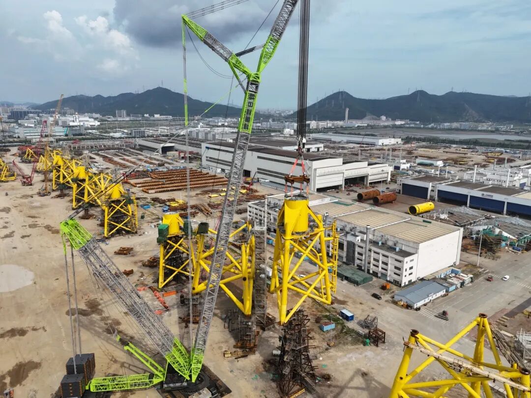 據悉,英奇角(Inch Cape)歐洲海上風電項目是中資企業海外主導開發的最大能源項目,目前該項目導管架、單樁過渡段和配套鋼樁的建造工作正在國內進行。此次完成主結構合龍的導管架總高85.5米、重量約2362噸,由3條導管腿及卡樁器組成,項目團隊創新采用單臺吊機作業方式,由中聯重科4000噸履帶起重機“獨當大任”。